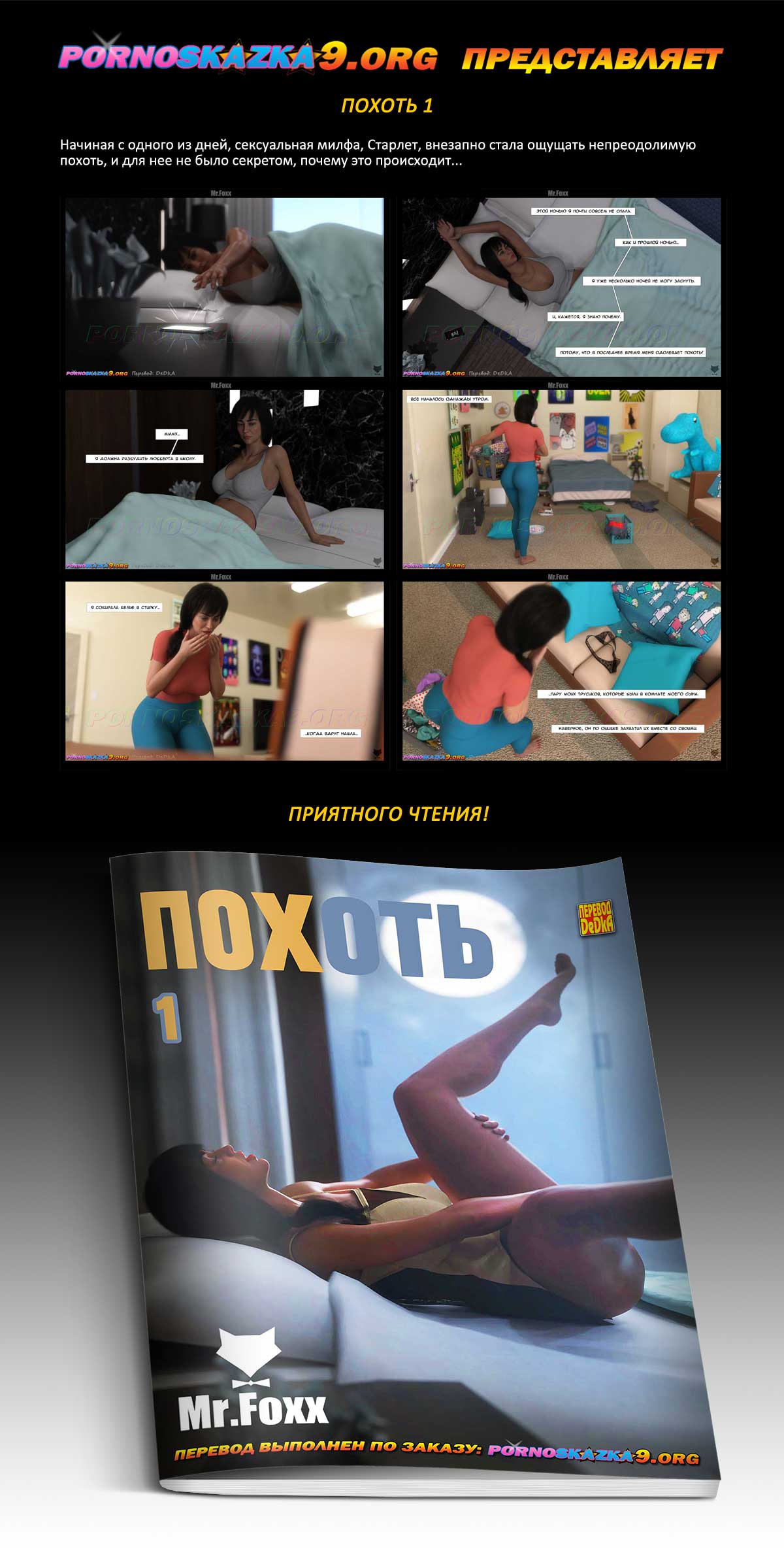 Порно комикс «Похоть 1.» Начиная с одного из дней, сексуальная милфа, Старлет, внезапно стала ощущать непреодолимую похоть, и для нее не было секретом, почему это происходит…